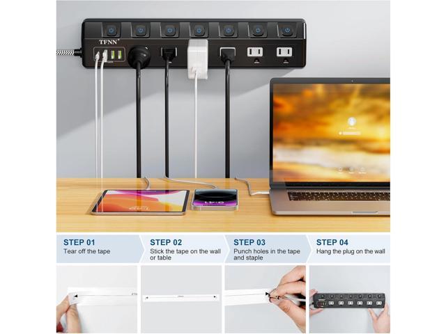 - Individually Switched Power OutletsEach outlet can be switched independently, avoiding frequent plugging and unplugging of high-power appliances during use, switching appliances efficiently and simplifying daily use.The 45° angled flat plug is perfect for crowded and tight spaces su