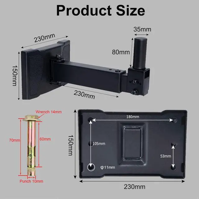 Wide range of applications: suitable for wall speaker mounting brackets in bars, home theaters, churches, conference rooms, classrooms and other places.
