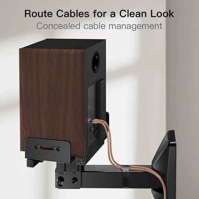 Cable ManagementCable ties are included to route cables along the arms of the bookshelf speaker mount for a clean, streamlined look. The speaker mount wall pair is a perfect upgrade for home theaters, game rooms, or music studios.