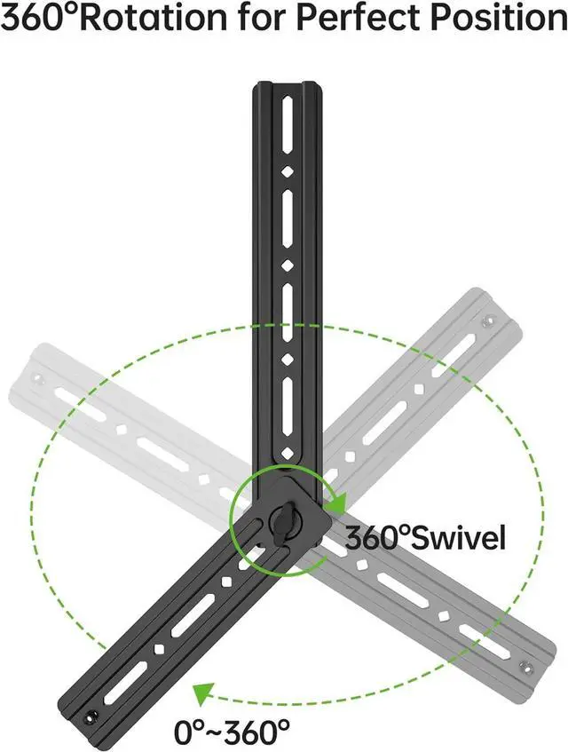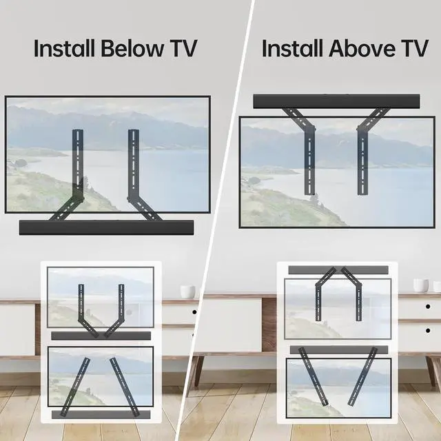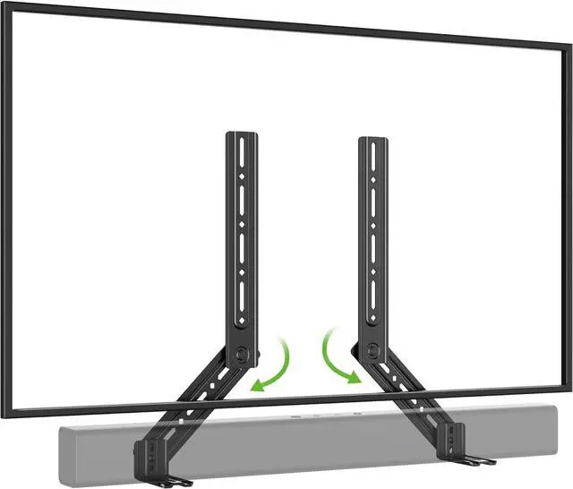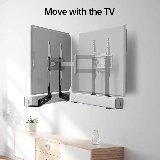 Easy Setup: Adjust and swivel arms to fit soundbar holes of various widths and adjust the gap between the soundbar and the TV.