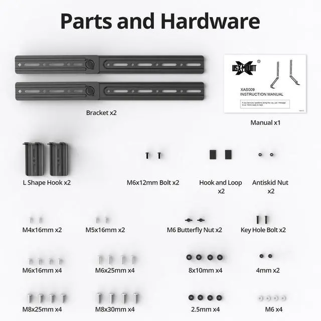 Lockable Hooks: We provide the L-shaped hooks for the soundbar with mounting holes in the bottom. Very sturdy once locked in place avoid soundbar swings and slides.