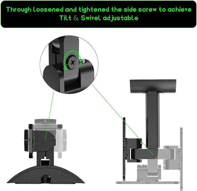 Tilt & Swivel Adjustable: Through loosened and tightened the side screw to achieve Tilt & Swivel 180°adjustable (90° up and 90° down) & (90° right and 90° left). After the side screw tightened, the mount' s direction is fixed and cant adjust