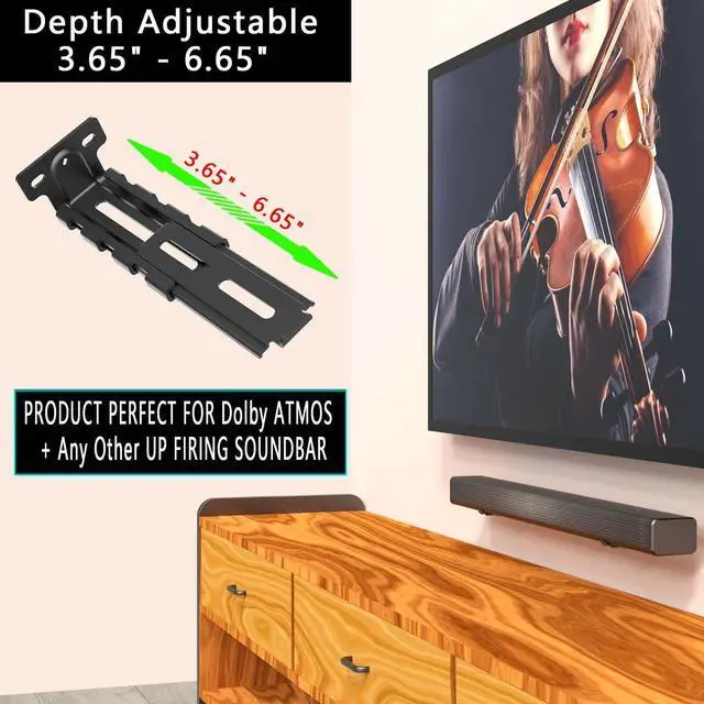 Humanized Design: Soundbar mounting bracket can be depth Adjustable ( 3.65 " - 6.65 " ), which can meet all soundbar installation requirements and leave enough space for your cables