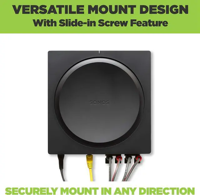 MOUNT YOUR SONOS AMP IN ANY DIRECTION. The Sonos Amplifier can be mounted in any direction for location flexibility and ease to service. Our Sonos Mount is sleek, ensuring easy access to the power button, jacks and cables.