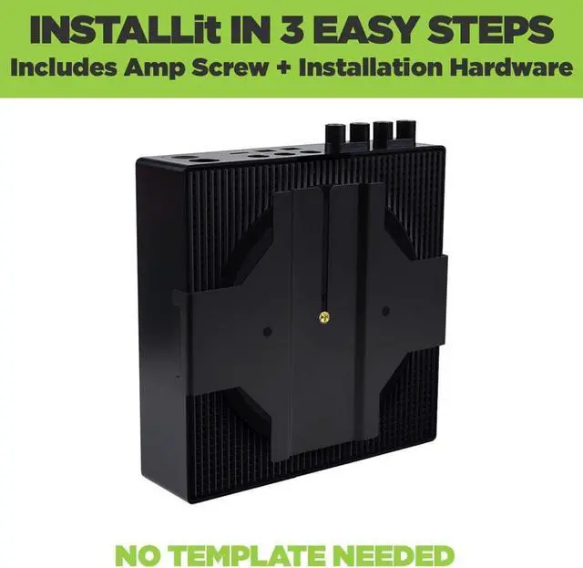 INSTALLit IN JUST 3 EASY STEPS. No complicated templates. Drill not required. Stud mounting optional. Includes flat head drywall screws, drywall anchors rated for 25 pounds each and an M5 screw.