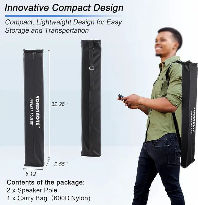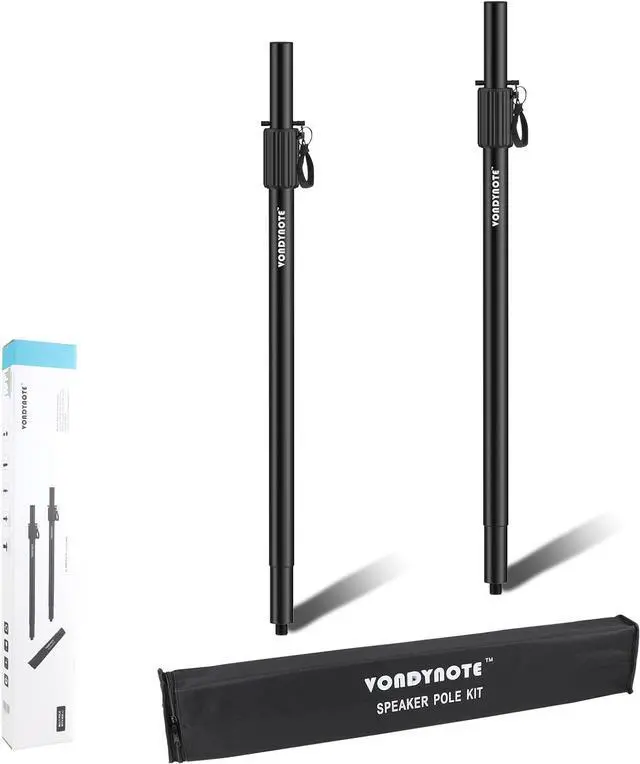 Set of 2 subwoofer mounting speaker poles with a carry bag included in the package.
