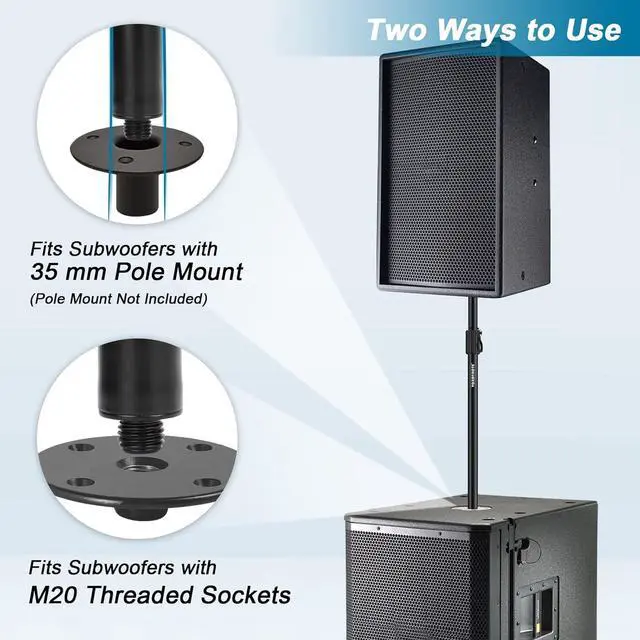 Fit most modern speakers with a 35mm pole mount. Fits subwoofers both with M20 threaded sockets and 35mm mount as well.