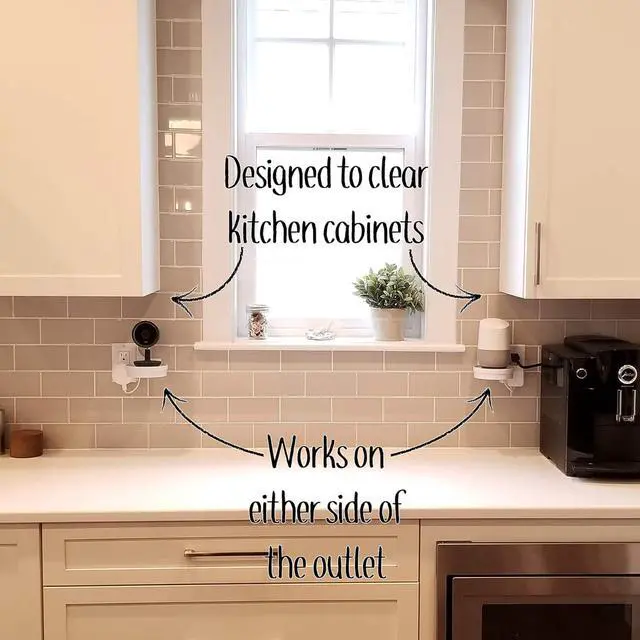 The Easy Outlet Shelf goes on either side of your outlet, not the top or bottom, which gives you better cord control and provides more clearance for cabinets and counter tops - making it easy to find the perfect spot.
