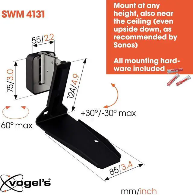 ENHANCE YOUR LISTENING EXPRIENCE: With a swivel range of up to 60° and a 30° tilt range (upwards or downwards), the Vogel' s speaker wall mount allows you to adjust your speakers to the perfect angle.
