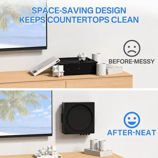 Space Save: The compact design of the bracket allows for flexible installation, you can mount your Amp behind or beside to your TV or any other convenient place to show or hide it as you wish. So that it away from your countertop, saving countertop space to become more clean and tidy!