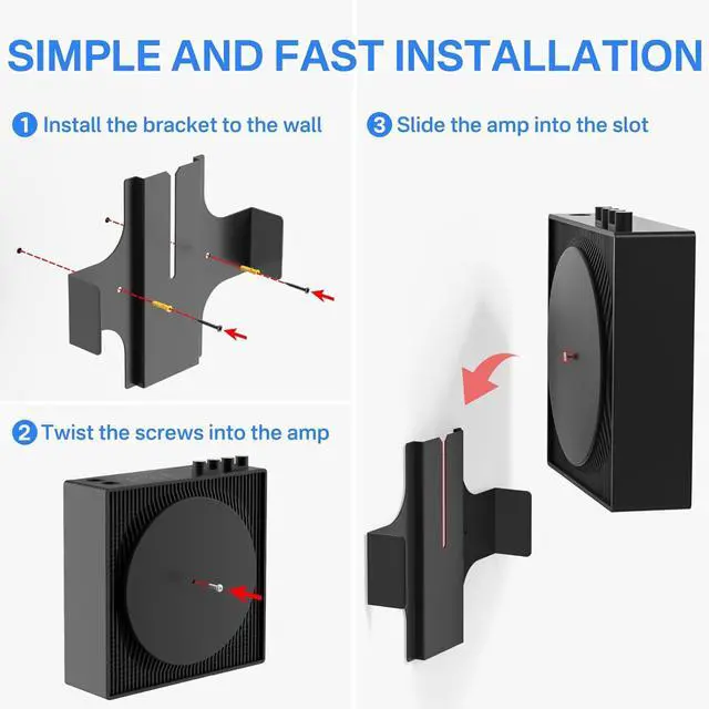 Superior Quality Material: This mount made from superior quality metal steel which can hang your amp stably and firmly and coated in stealth black color and won' t rust or chip. It is also very easy to install, just 3 steps to easily mount your Sonos Amp on the wall.