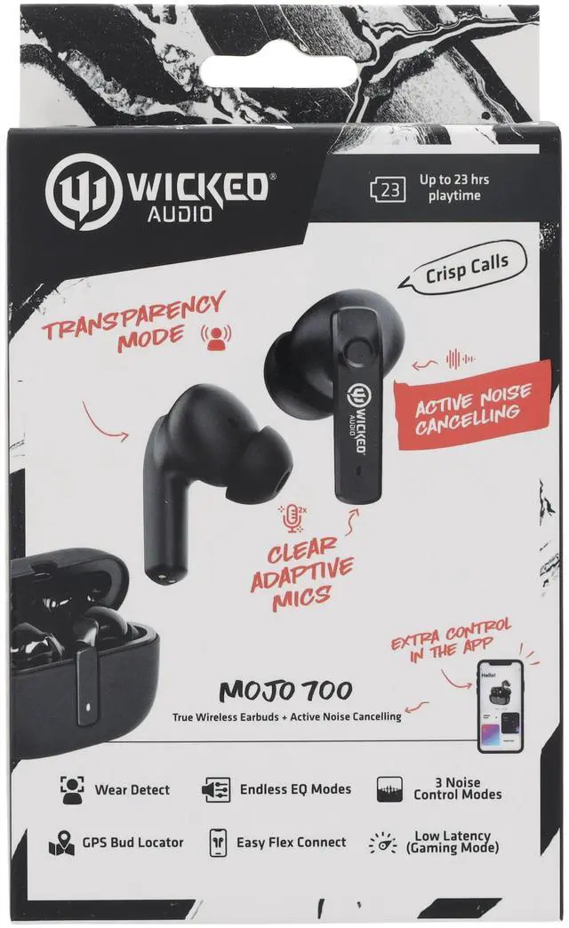 Kick it into high gear with the Mojo 700 wireless Bluetooth earbuds. Active Noise Cancelling keeps outside sound out but Transparency Mode gives you the option to hear your surroundings if it suits you. Flexibility is the name of the game. Gamers can adjust EQ settings to boost specific frequencies important for gameplay such as enhancing footsteps or environmental sounds so you can improve your situational awareness and reaction times. Customize yours in the Wicked Audio App.