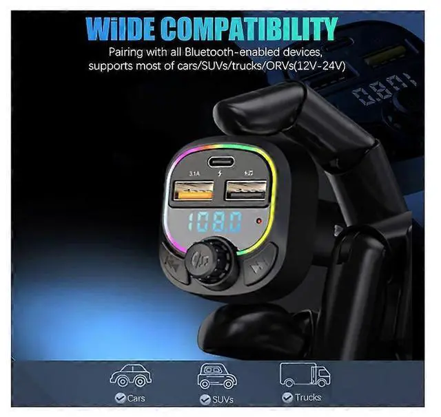 **Universal Compatibility**: Works with all 12-24V vehicles and Bluetooth-enabled smartphones, tablets, and audio devices