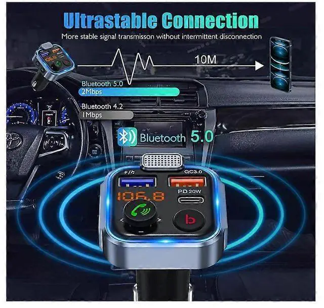 - **Bluetooth 5.0 Connectivity**: Ensures stable, quick-pairing with wide compatibility for 12-24V vehicles