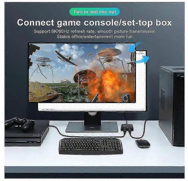 Experience seamless high-definition connectivity with the HDMI1215Y13 8K HDMI Switch/Splitter. This versatile device supports both switching and splitting modes, allowing you to connect two HDMI sources to one display or one source to two displays (note: simultaneous display not supported).