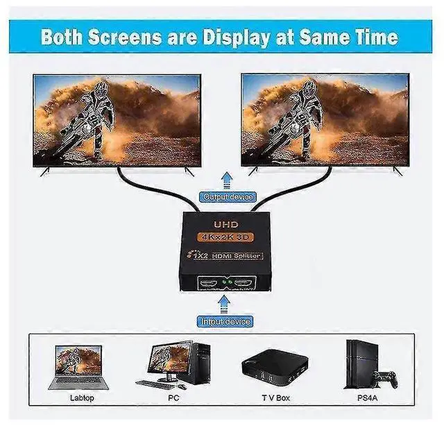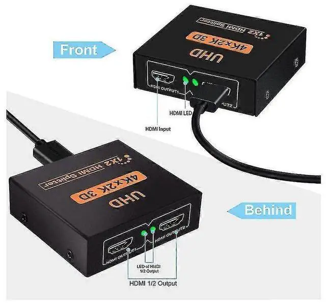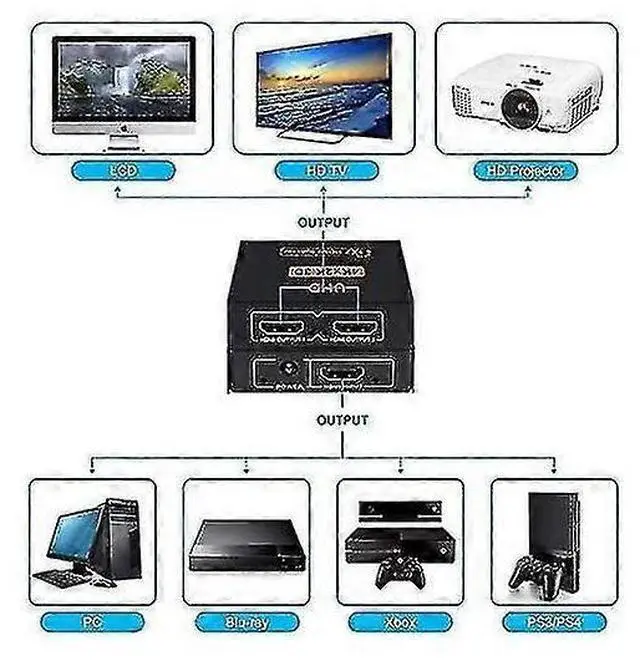 HDMI Splitter**: Distribute audio and video from one source to two HDMI displays simultaneously, ideal for watching TV in living room and bedroom without quality loss.