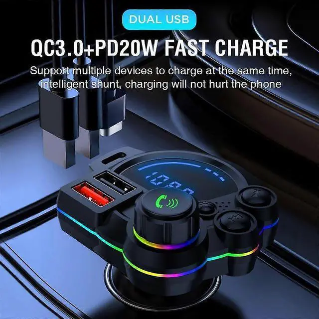 • Upgrade your car audio and charging with our advanced Bluetooth 5.3 FM Transmitter. Featuring fast QC3.0 and PD20W charging, it powers devices quickly and safely. Enjoy seamless music playback from TF cards and USB drives, supporting multiple formats for high-quality sound. The built-in microphone with CVC noise cancellation ensures crystal-clear hands-free calls, enhancing driving safety. Bluetooth 5.3 technology provides stable, lag-free connectivity for uninterrupted music and calls. Perfect for daily commutes, road trips, and staying connected on the go.