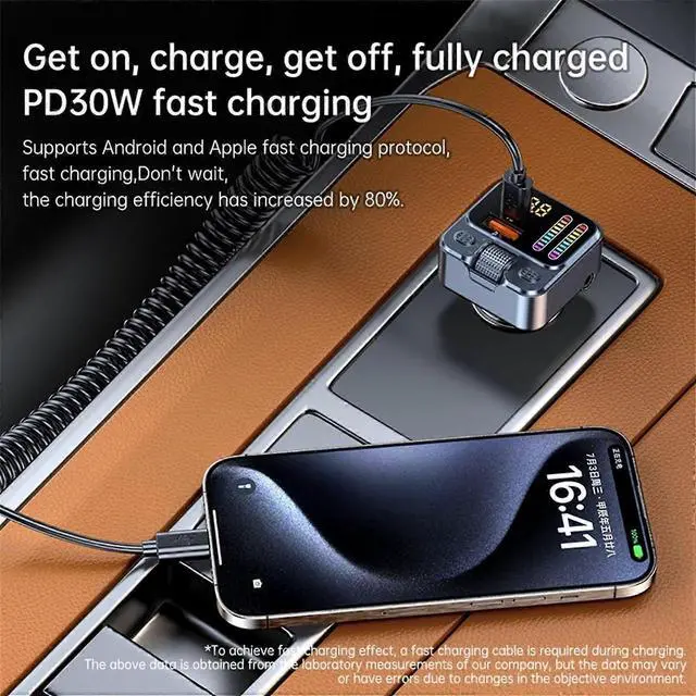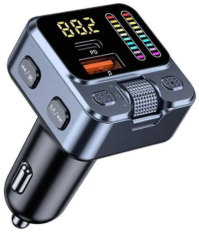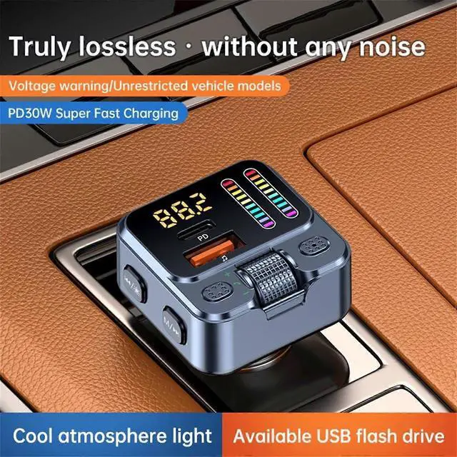Upgrade your driving experience with our all-in-one Bluetooth 5.3 FM transmitter and fast charger. Latest Bluetooth 5.3 for CD-quality audio streaming and 33ft stable range 42W ultra-fast dual charging (30W USB-C + 12W USB-A) powers laptop and phone simultaneously Crystal clear hands-free calls with CVC noise cancellation for 90% background noise reduction Beat sync LED light show with 5 customizable modes that pulse to your music 3-in-1 music playback via Bluetooth, USB drive, or AUX cable Universal compatibility with iPhones, Androids, iPads, and all 12V-24V vehicles. Perfect for road trips, daily commutes, and turning your car into a personal entertainment hub.