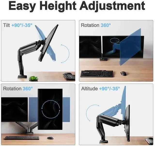 Dual Monitor Mount Stand for 13-32 inch Screens, 360° Heavy Duty Adjustable Arm Desk Mount with Tilt, Swivel, Rotation, Holds Up to 22lbs per Monitor Arm