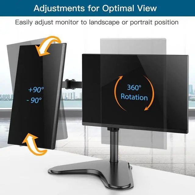 Dual Monitor Stand for Two 13-32 inch Flat Curved LCD Screens with Swivel, Tilt, Rotation & Height Adjustable Free Standing, Black