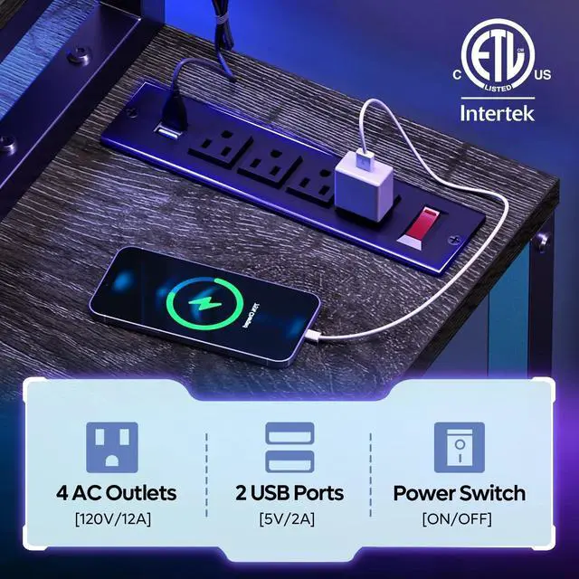 Charging Port: Equipped with 4 AC outlets and 2 USB ports, this office desk can power up to 6 devices simultaneously The charging ports are ETL certified and include an on/off switch for convenience and safety