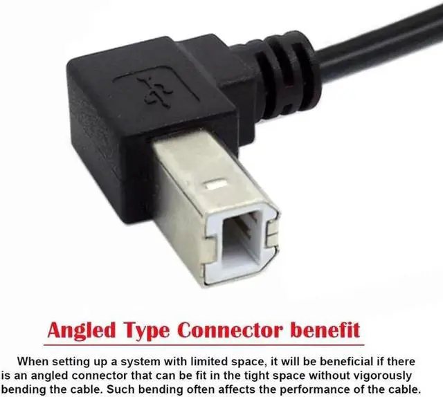 Used to connect USB Type B cables in tight fit applications.