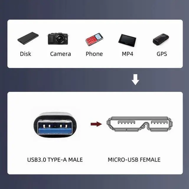 Adapts USB 3.0 Type-A Male Connections to USB Micro 3.0 Male and vice-versa, With this cable, you can directly connect micro usb 3.0 socket, converted to micro usb 3.0 extension.