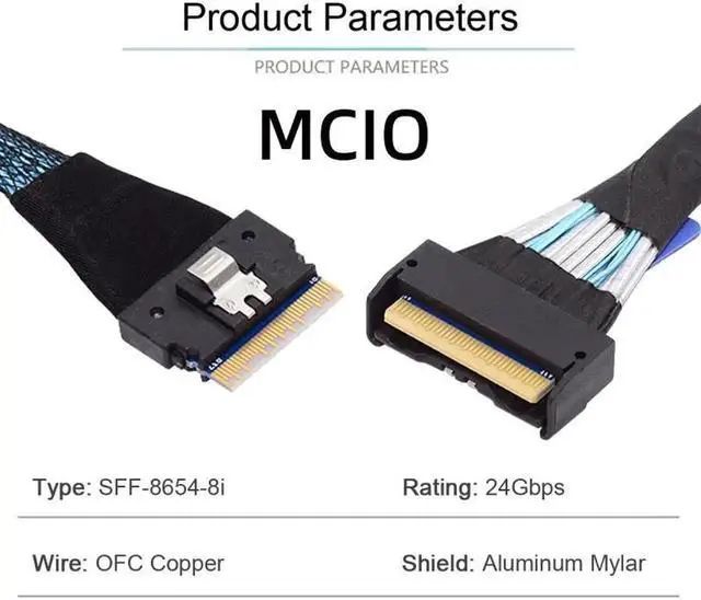 What is mini cool edge Io (MCIO): MCIO cables are designed for data center, networking and telecommunications markets that use SAS, PCIe, Ethernet and othersignal protocols.