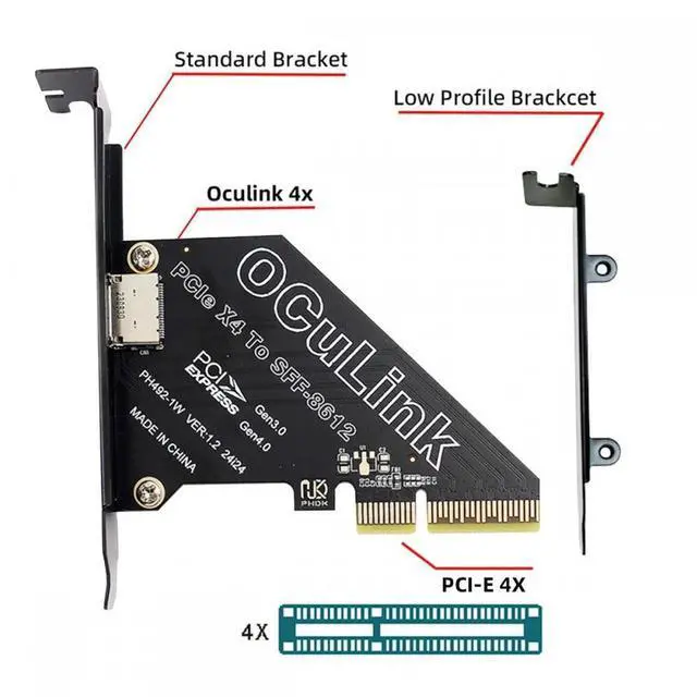 Connectors: 1xOCuLink SFF-8612 female and 1xPCI Express; with standard length and low profile bracket.