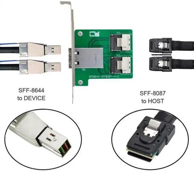 2-Ports SFF-8087 to SFF-8644 Adapter with Full PCIe Slot Profile Mounting Bracket;
