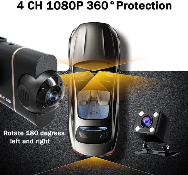 - 4-Channel Synchronized Recording: Front 1080P Full HD plus Dual Interior 480P plus Rear 480P complete coverage with no blind spots