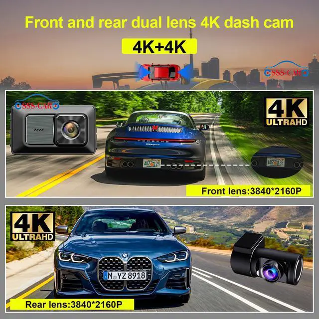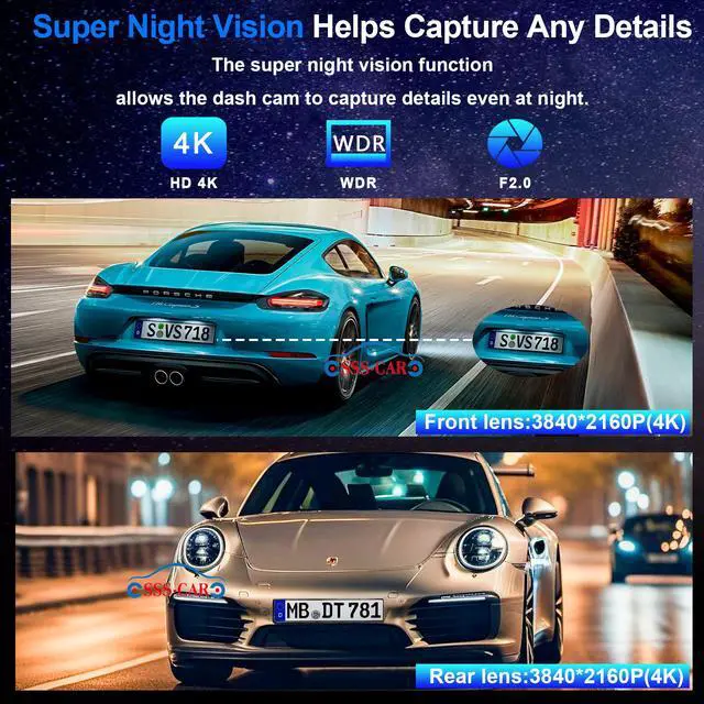 This dual lens dash cam system provides comprehensive monitoring with two separate recording channels. The cameras capture a wide field of view between 160 and 170 degrees, effectively covering both the road ahead and the vehicle interior while minimizing blind spots.