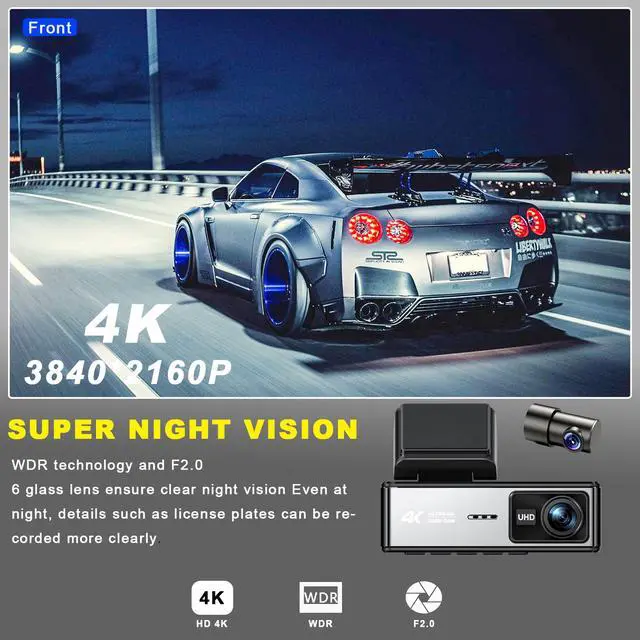 View footage clearly on the 3.59-inch IPS screen. The dash cam supports loop recording and is compatible with high-speed storage cards up to 256GB, ensuring reliable and continuous operation.
