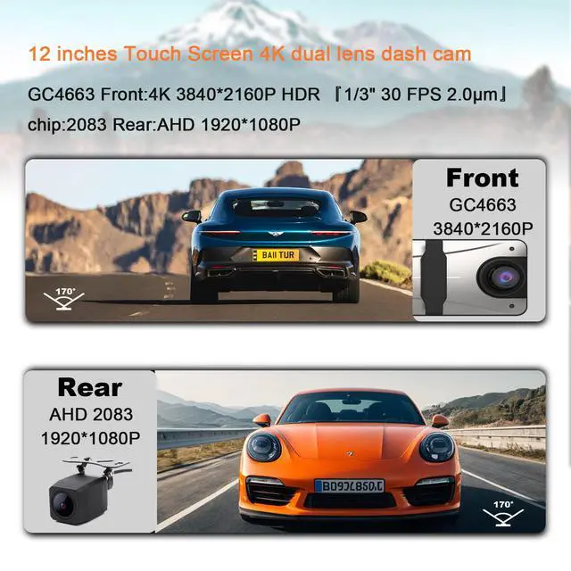 Features a high-performance GC4663 sensor with HDR and WDR technology to capture exceptionally clear, full-color video with accurate details in both day and low-light driving conditions.