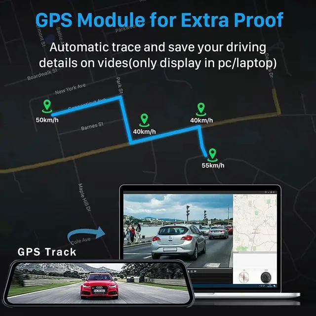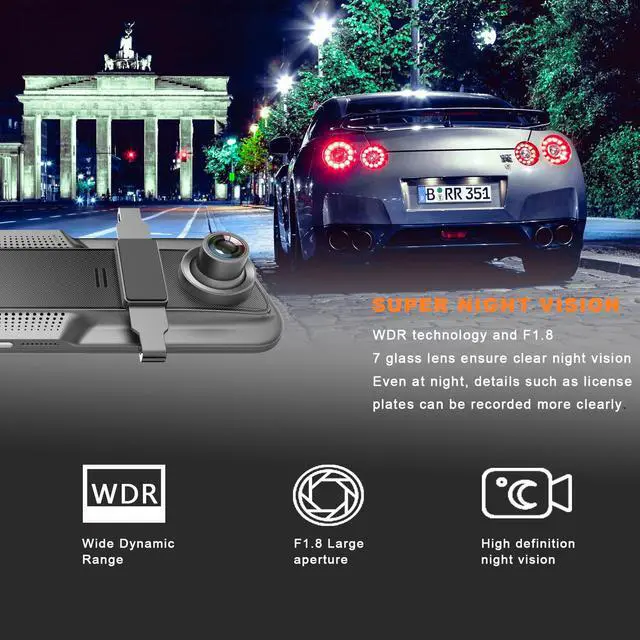 Features a large 10-inch full touch screen that replaces your standard rearview mirror, providing an expansive live view and intuitive control interface for both driving and parking.