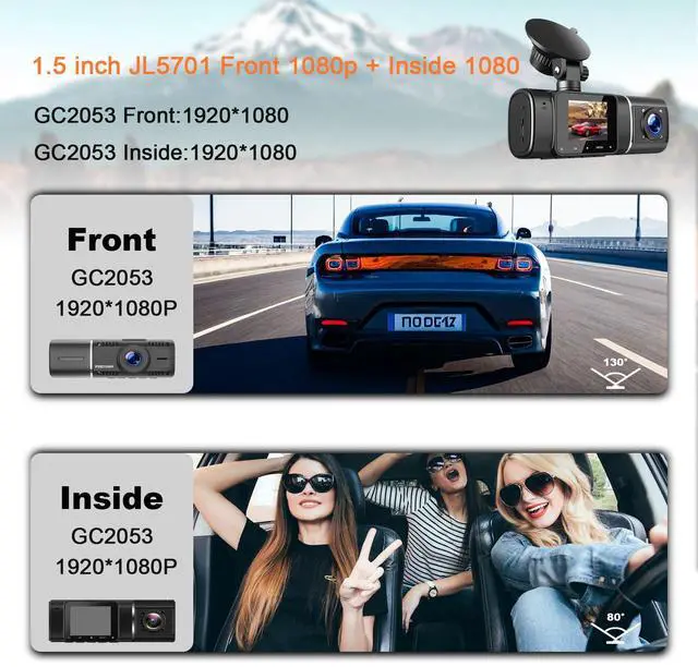 Record both the road ahead and the interior simultaneously with dual ultra-wide 170° lenses. This system provides comprehensive coverage to monitor your vehicle's surroundings and cabin activity.