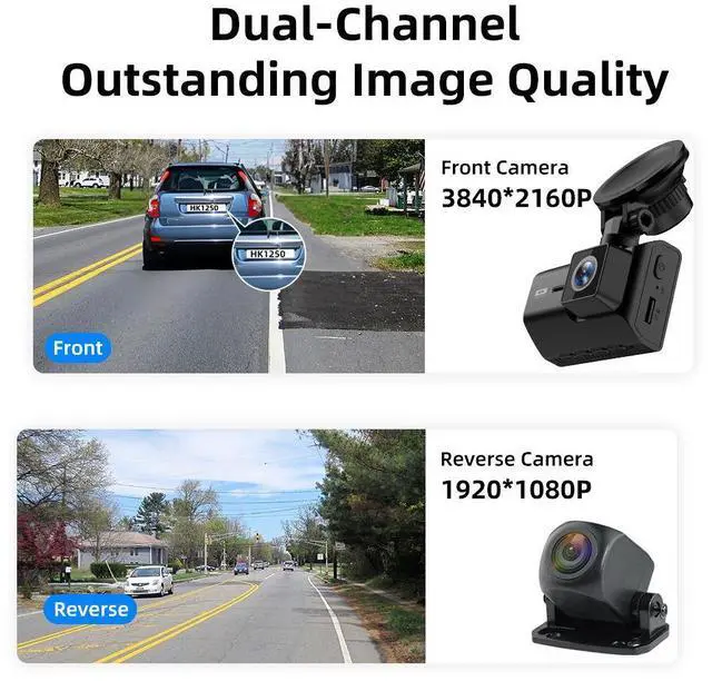 Simultaneously records the road ahead in sharp 4K and the interior/rear in 1080P. Functions as a detailed Event Data Recorder (EDR) and is built to operate reliably in extreme temperatures from -20°C to 65°C.
