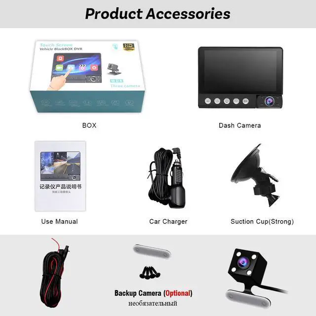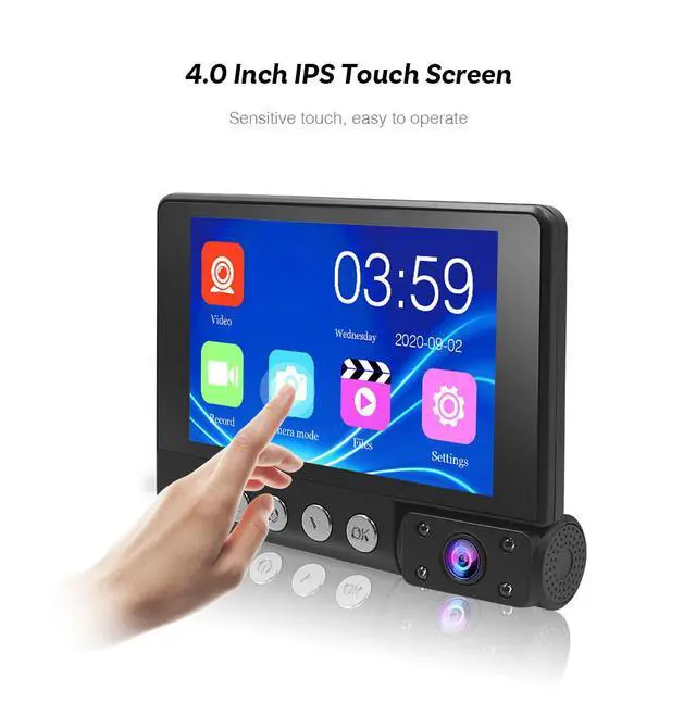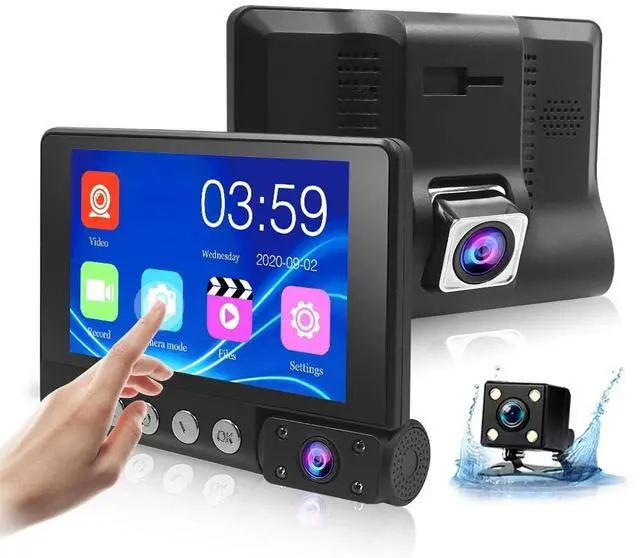 Features a responsive 4-inch IPS touch screen mounted in the cabin, allowing operators to easily view live feeds from all three cameras, review footage, and adjust settings directly on the device without needing a smartphone.