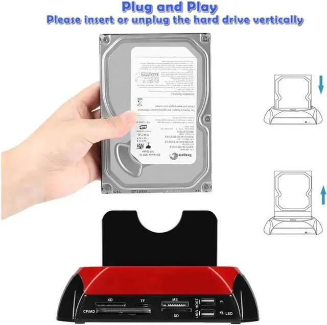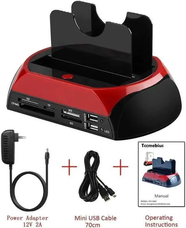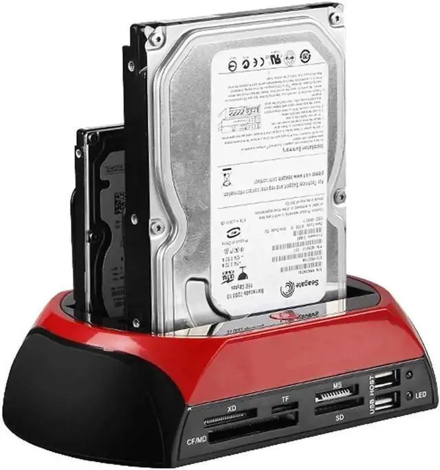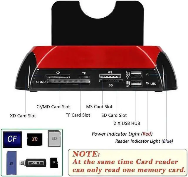 • Support SATA an IDE HDD/SSD + All in One card reader XD/TF/MS/CF/ SD card + USB Hub function + Two bay External Enclosure + One-Touch Backup