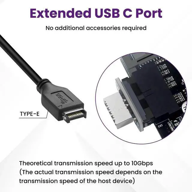 2. The front panel connector adapter does not alter the original transfer rate; it only changes the physical interface. The transfer rate remains the same as the motherboard's 19-pin USB 3.0.