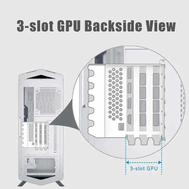 Installation Ready: Requires PC cases with 7/8 open PCIe slots (no railings between slots for full open space). Overall white style for white PC cases.
