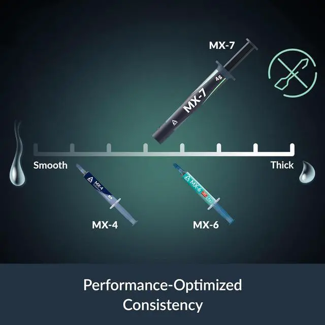 NEXT-LEVEL THERMAL PERFORMANCE: MX-7 features a performance-optimized, dense, and highly viscous consistency. Its high filler content ensures exceptional heat transfer