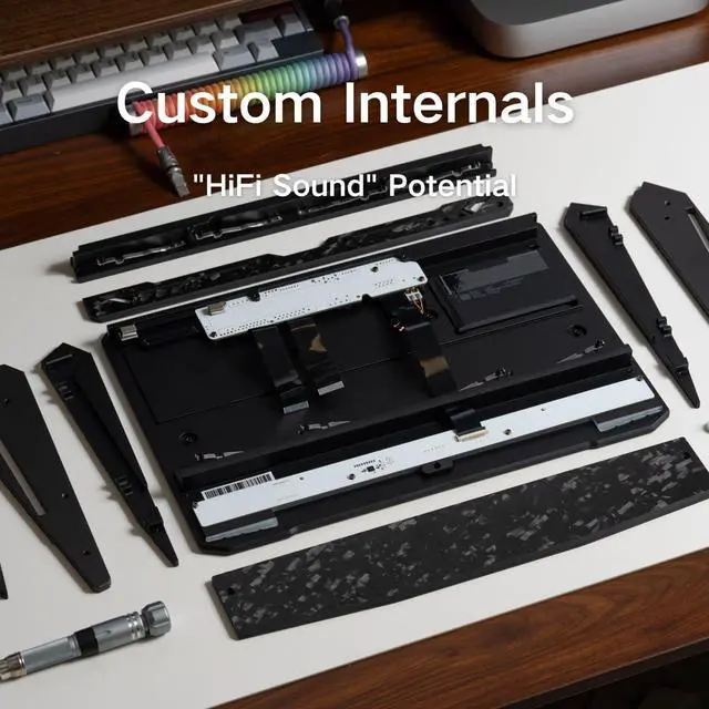 Aluminum & Forged Carbon BuildThis 75% mechanical keyboard features a CNC-machined aluminum frame and forged carbon fiber body, delivering a solid feel and premium look. The upgraded side panels reflect the sleek lines of a supercar, combining performance and aesthetics. Ideal for gamers and creators seeking a durable and stylish custom keyboard.