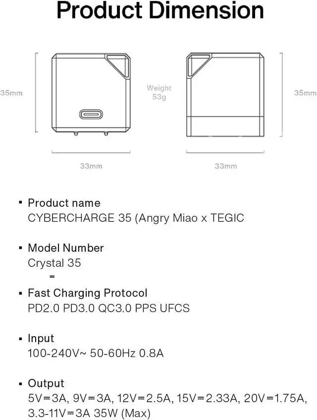 USB C Charger Block 35W, Angry Miao Cybercharger, GaN Portable Charger Fast Charging for iPhone 15/15 Plus/15 Pro/15 Pro Max, 14/13/12 Series, iPad, Galaxy, Andriod, Pixel(Cable Not Included)