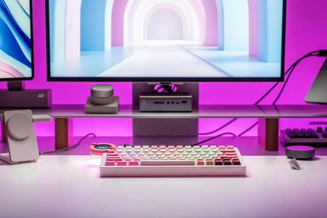DRY STUDIO Battleye 74.5 RT HE Magnetic Wired Gaming Keyboard with Mechanical Feel Full Metal Aluminum with Touch Screen and Rapid 4-Mode Switching RGB Lighting & Gaming Accessories - Pink Blaze