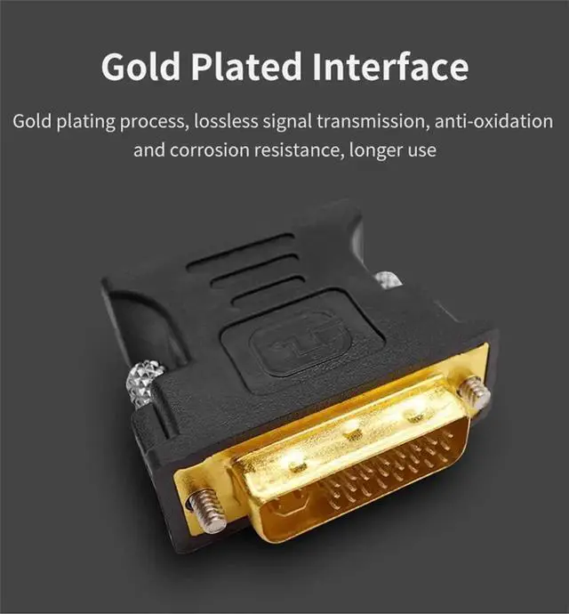 DVI 24+5 Male to VGA Female Converter DVI to VGA Adapter VGA Monitors Specifications: Product color: Black Type: Adapter Material: Plastic shell Product function: Used in computer host,connected with all kinds of monitors and digital TV 1.Most graphics cards are equipped with DVI-I (24+5) interface, and monitors and projectors are mostly equipped with VGA interface. If you want to use dual monitors,you can be DVI to VGA interface to achieve. 2.It can be used in DVI to VGA devices,such as video cards,digital signals, analog signals,and monitors and projectors with only VGA interfaces! 3.Gold-plated DVI pins to ensure high-quality signal transmission Easy to install,Plug and Play. Package Included: 1 x DVI 24+5 to VGA converter adapter Kindly Reminder: Graphics cards and other output devices DVI into VGA must be 24+5 DVI interface that can be converted to VGA. 24+1 DVI interface,can not be converted to VGA. Notes: Due to the different monitor and light effect, the actual color of the item might be slightly different from the color showed on the pictures. Thank you!