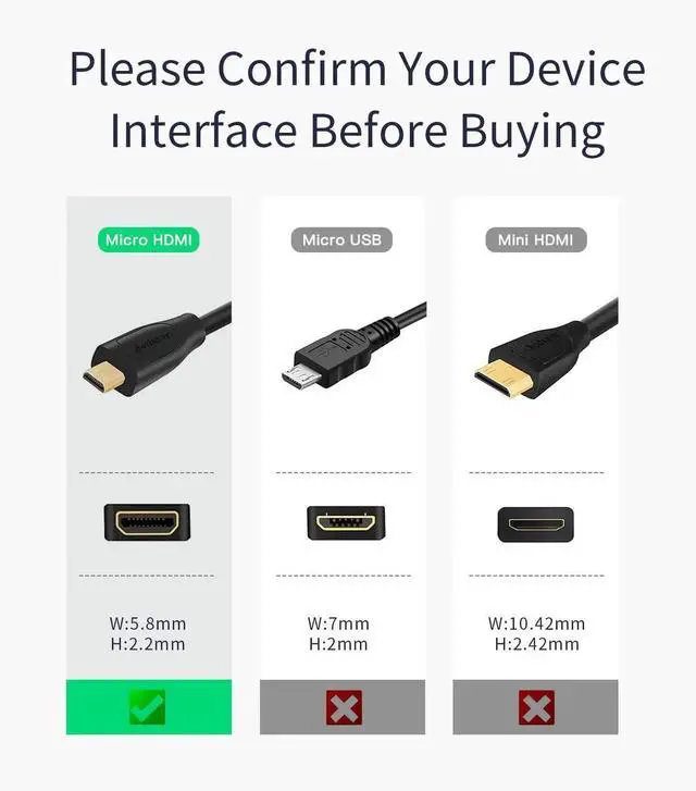 Micro HDMI to HDMI Adapter, 4K Mirco HDMI Male to HDMI Female Cable(Type D to Type A), Support 1080P 3D, for GoPro Hero8/7/6/5, Raspberry pi 4, Sony 6300, Nikon/Canon, Yoga 3 and Other Action Camera