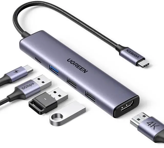 UGREEN USB C Hub 5 in 1 Multiport Adapter Revodok 105 4K HDMI, 100W Power Delivery, 3 USB-A Data Ports, USB C Dongle for MacBook Pro/Air, iPad Pro, iMac, iPhone 16 Pro/Pro Max, XPS, Thinkpad