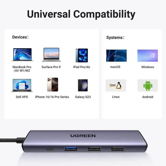 Broad Compatibility: Plug and play for multiple operating systems,including Windows, MacOS, Linux.The USB C Dongle is compatible with almost USB-C devices such as MacBook Pro, MacBook Air, MacBook M1, M2,M3, iMac, iPad Pro, Chromebook, Surface, XPS, ThinkPad, iPhone 15 Galaxy S23, etc
