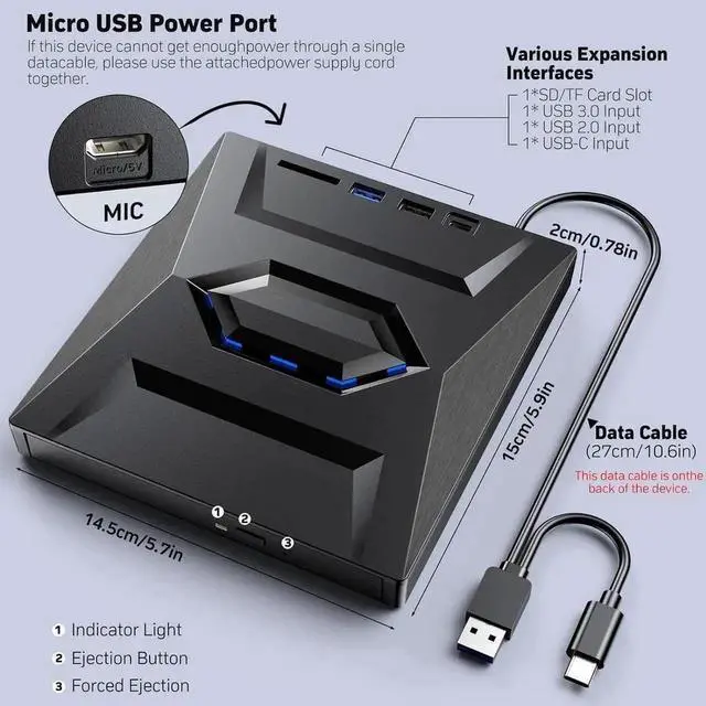 ![Alt view image 6 of 6 - [5 in 1] External Blu Ray Drive, Portable Bluray Player Writer Reader,CD Burner with USB 3.0 typc C Port& SD Card,DVD & CD-ROM +/-RW, External Blu-Ray CD DVD Drives for PC Laptop Windows Linux MacOS](https://c1.neweggimages.com/productimage/nb640/C2ZPS2601260877SG50.jpg)